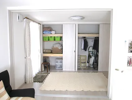 荷物が多くなってきて、収納スペースが欲しいとの要望がありリフォーム工事。 収納をたっぷり設けた事で、すっきりと暮らしやすくなりました。