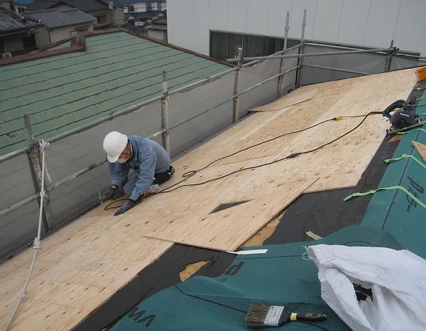 屋根部分の一部が剥がれ、全体的に傷んできたため改修。